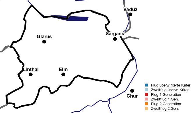 Detaillierte Stadien-Entwicklung und Käferflug